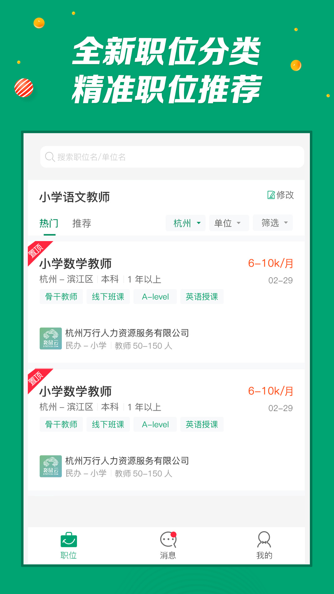 万行教师招聘版APP,校长&HR高效招聘工具,即时在线沟通,海量求职教师畅快沟通,随时随地网络教师人才。