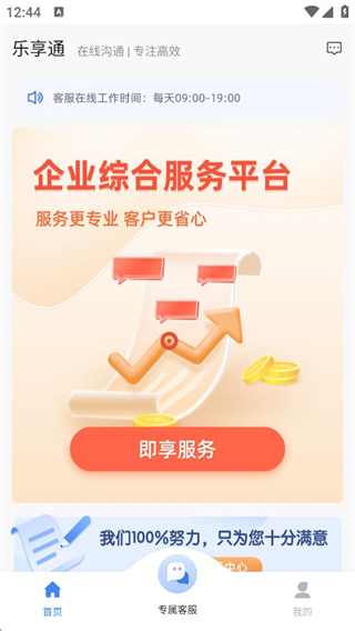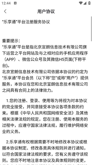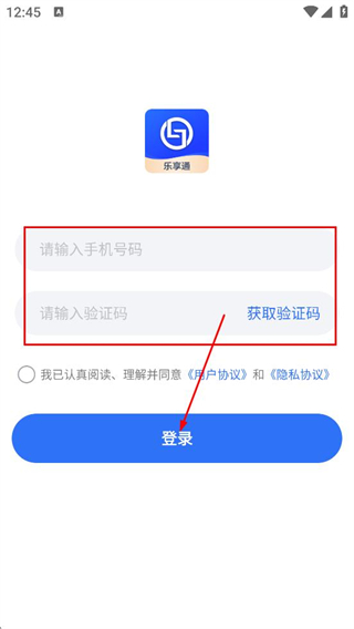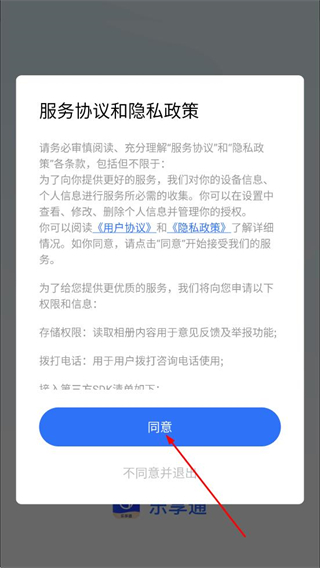 1、在服务协议和隐私政策弹窗中,点击同意,进入乐享通首页。