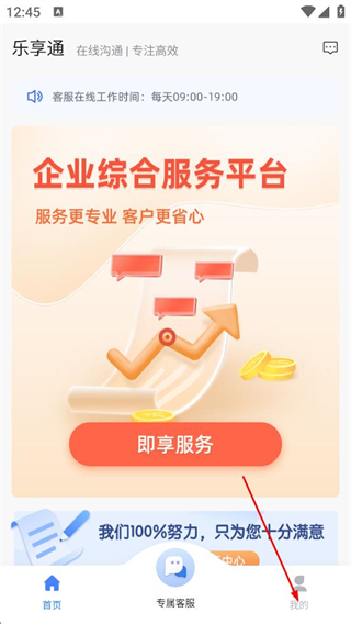 2、随后我们可以在乐享通首页,点击底部我的,进入登录页面。