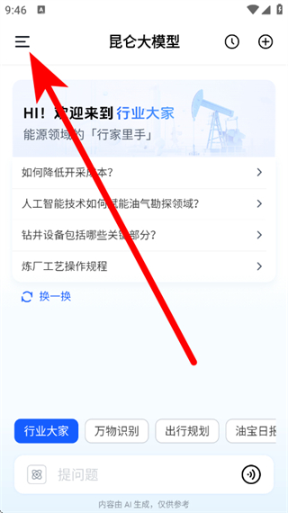 1、打开昆仑大模型员工助手,点击左上角的菜单按钮。