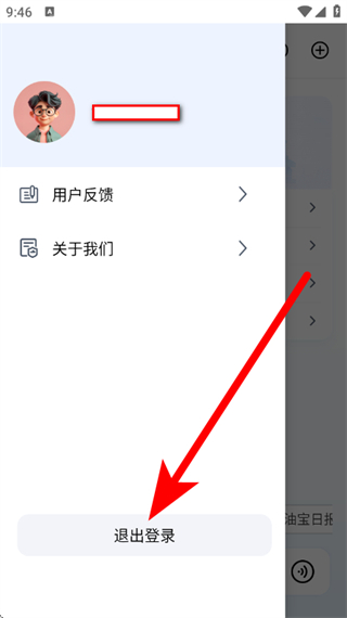 2、在菜单界面中,点击退出登录,进入弹窗页面。