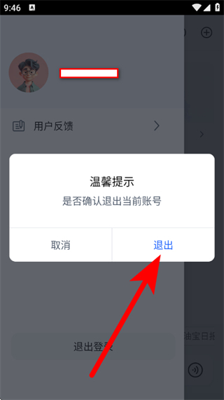 3、在温馨提示弹窗里,点击退出,完成账号退出操作。