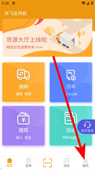 1、打开鸿飞达司机,点击底部的我的,进入个人页面。