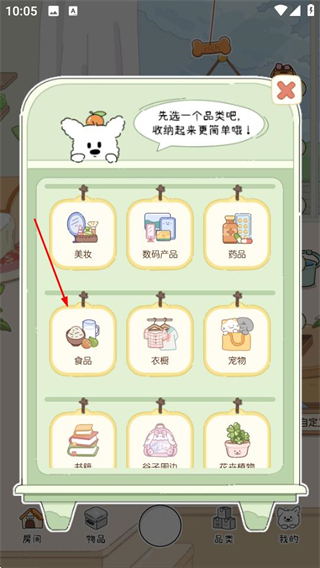3、在品类页面,选择目标品类,进入添加物品页面。