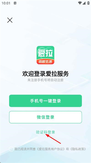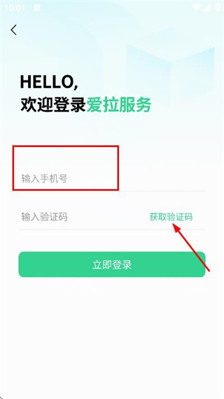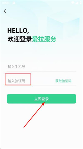 1、进入爱拉服务点击验证码登录,进入验证码登录页面。