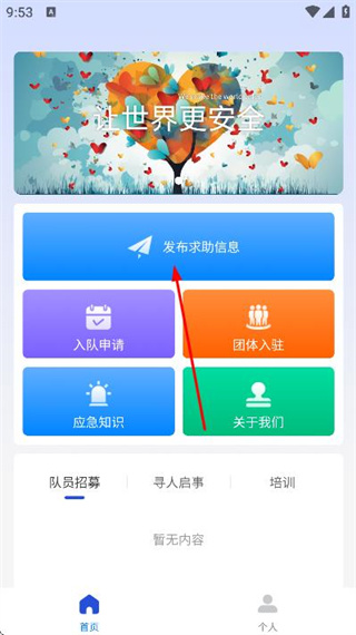 1、在首页点击发布求助信息选项,进入求助页面。