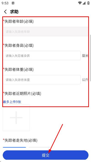 3、在求助页面填好所有必填信息后,点击提交按钮完成求助信息的发布操作。