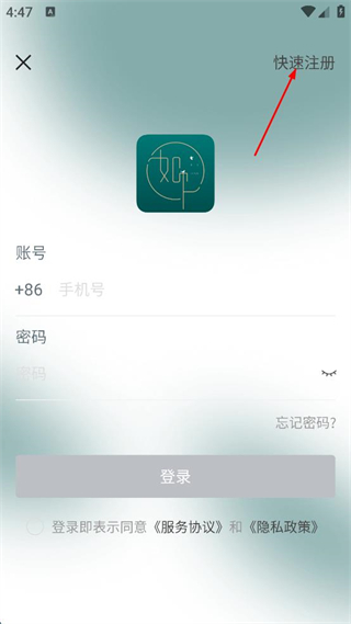 1、打开如见APP登录页面,点击右上角快速注册按钮。