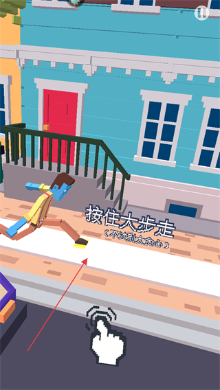 2、按住操作让角色大步移动,按提示避免动作太急,保持行进节奏。