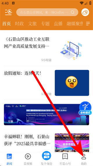 1、打开北京石景山首页,点击底部的我的,进入个人页面。