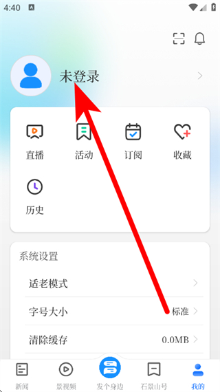 2、在个人页面,点击未登录,进入登录界面。