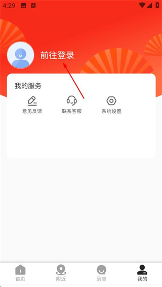 2、在个人页面,点击前往登录选项,进入登录页面。