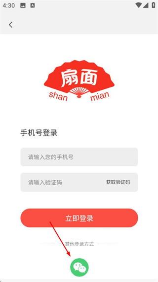 3、在登录页面,点击微信图标,可通过微信快捷登录账号。