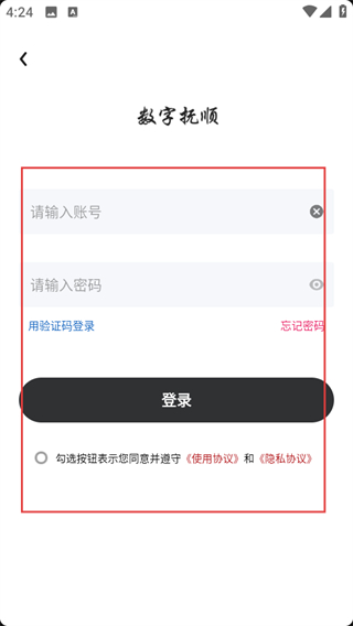 3、在登录页面,输入信息并勾选协议后,点击登录完成账号登录。