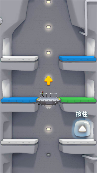3、操控电梯升降,将绿色小人送达对应楼层平台,完成该角色的运送任务。