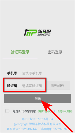 3、在输入框输入验证码,勾选协议后,点击登录,完成登录。