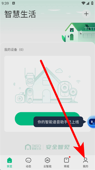 1、打开360智慧生活,点击底部我的,进入个人页面。