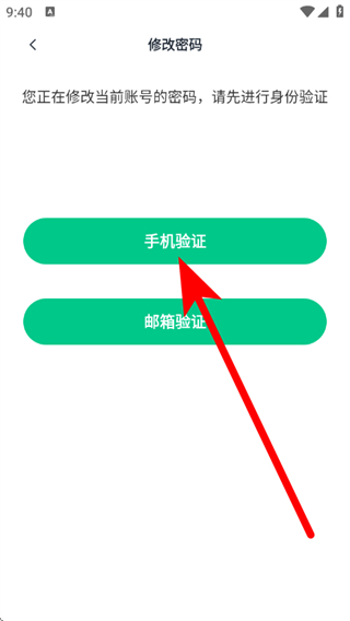 5、在修改密码页面,选择手机验证方式,进入身份验证流程。