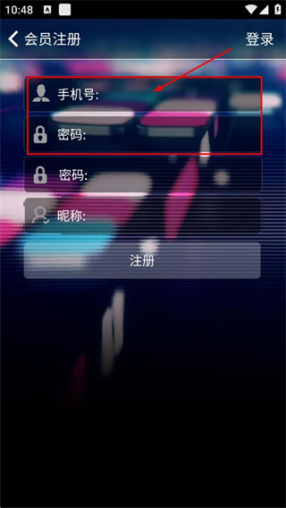 2、在会员注册页面,填写手机号对应的内容,并设置对应的密码。