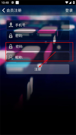3、在会员注册页面,填写确认密码与昵称,点击注册,完成会员注册操作。