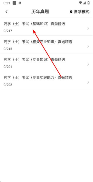 2、在历年真题页面点击目标真题,进入该真题的题目页面。