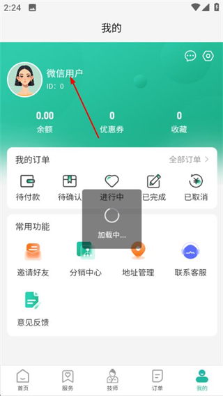 2、在个人中心页面,点击微信用户区域,进入登录页面。