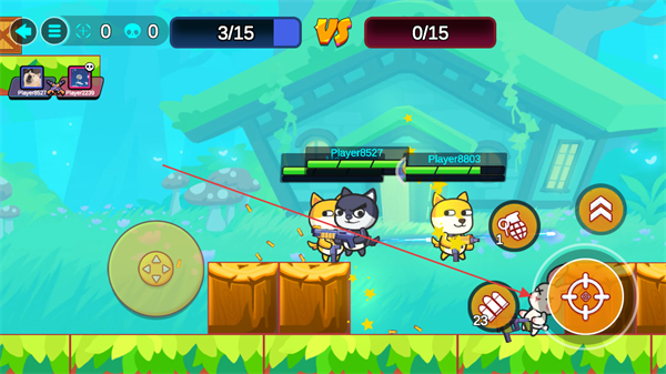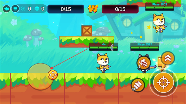 1、操控移动键调整角色位置,点击攻击键攻击敌方,开启对战积累击杀数。