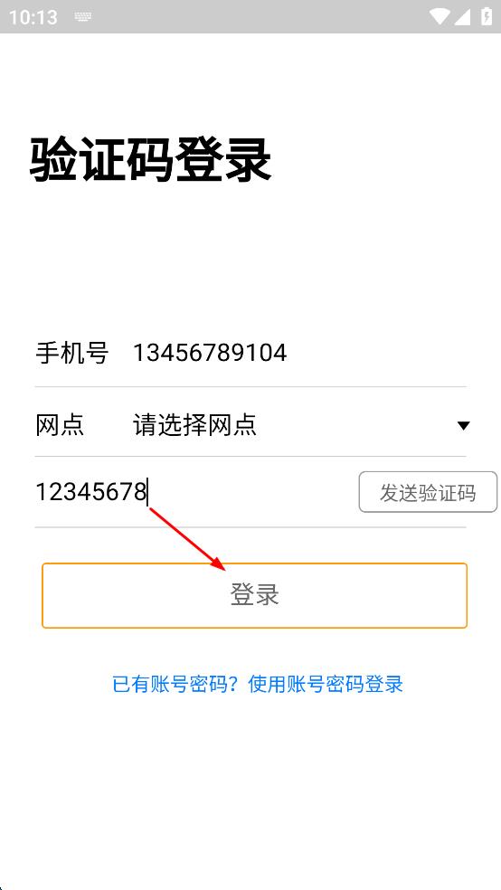 3、选择对应的网点,输入验证码后点击登录按钮,完成安能软件的登录操作。