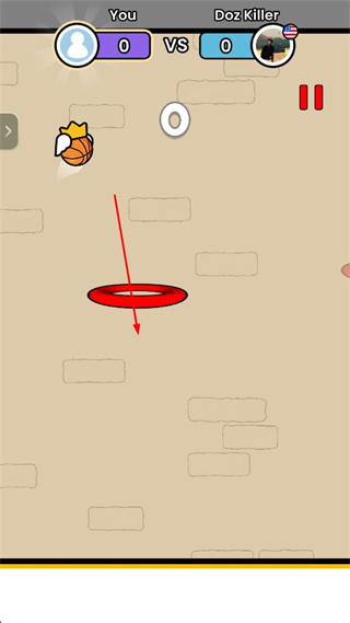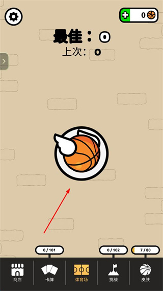 2、操控带有翅膀的篮球,向界面中的红色圆环区域投射,完成投篮操作。