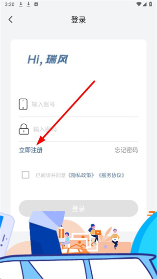 3、在登录页面里,选择立即注册选项,进入注册信息填写界面。