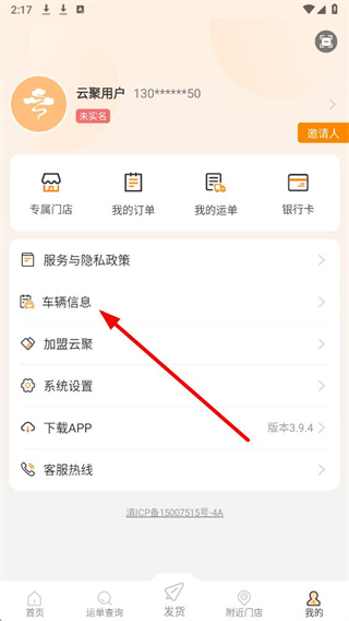 2、在个人页面中,找到并点击车辆信息选项,进入车辆信息页面。