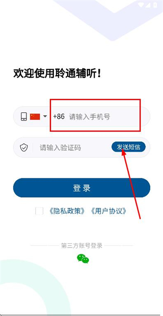 2、在手机登录页面填写手机号,勾选协议后,点击发送短信。
