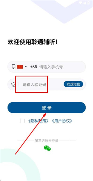 3、在验证码输入框中填写收到的验证码,点击登录完成账号的登录操作。