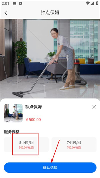 2、在钟点保姆页面,点击立即购买按钮,进入服务规格选择窗口。