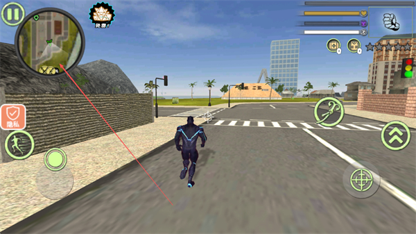 3、引导角色穿过城市道路,跟随地图指引向目标区域移动,维持跑酷的连续行进。