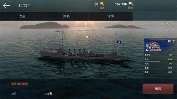 2、点击进入后,我们再点击选中不需要的战舰,然后点击右下角的出售按钮,即可将战舰卖掉了。