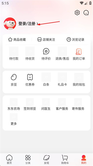 2、进入京东首页,找到页面底部的我的选项,点击该选项进入对应的个人中心页面。