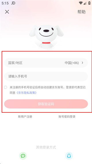 4、进入登录界面后,确认国家地区选项,再在输入框中填写需要登录的手机号码。