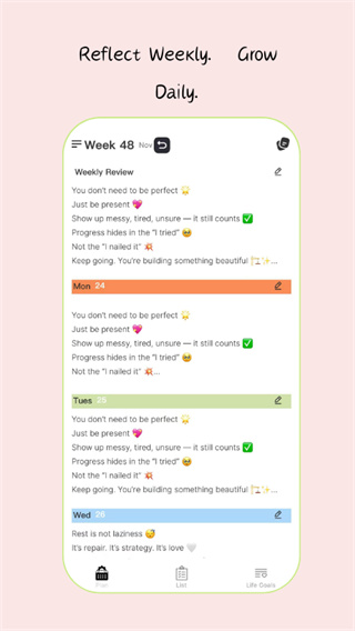 小芽计划是一款简洁实用的人生管理周计划电子账本,提供温和无压力的待办事项管理体验,支持添加计划清单并随时灵活调整,采用温馨马卡龙色系界面设计,允许创建彩色分类标签,可通过简单拖拽将任务安排至周历任意日期,帮助用户从容高效地完成计划,实现生活与工作的平衡。