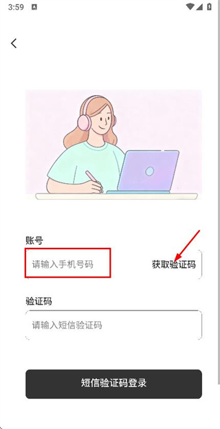 2、在登录页面填写手机号后,点击获取验证码。