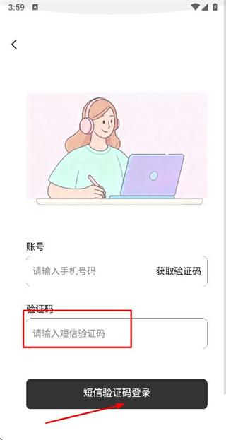 3、在验证码输入框中填写收到的验证码,点击短信验证码登录完成账号的登录操作。