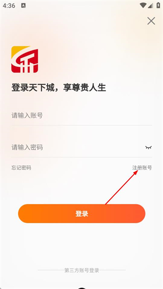 2、在登录页面,点击注册账号的选项,进入注册页面。