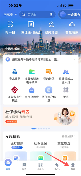 2、在苏服办首页,点击底部的我的选项,进入个人页面。