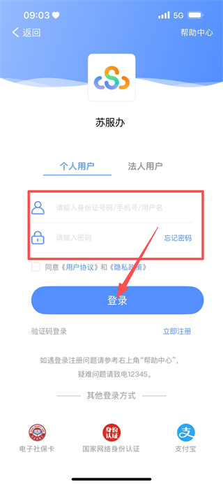 4、在登录页面,填写身份证号码/手机号和密码,点击登录,完成账号登录。