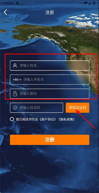 3、在注册账号页面填写验证码和密码,勾选协议后点击注册完成账号注册操作。