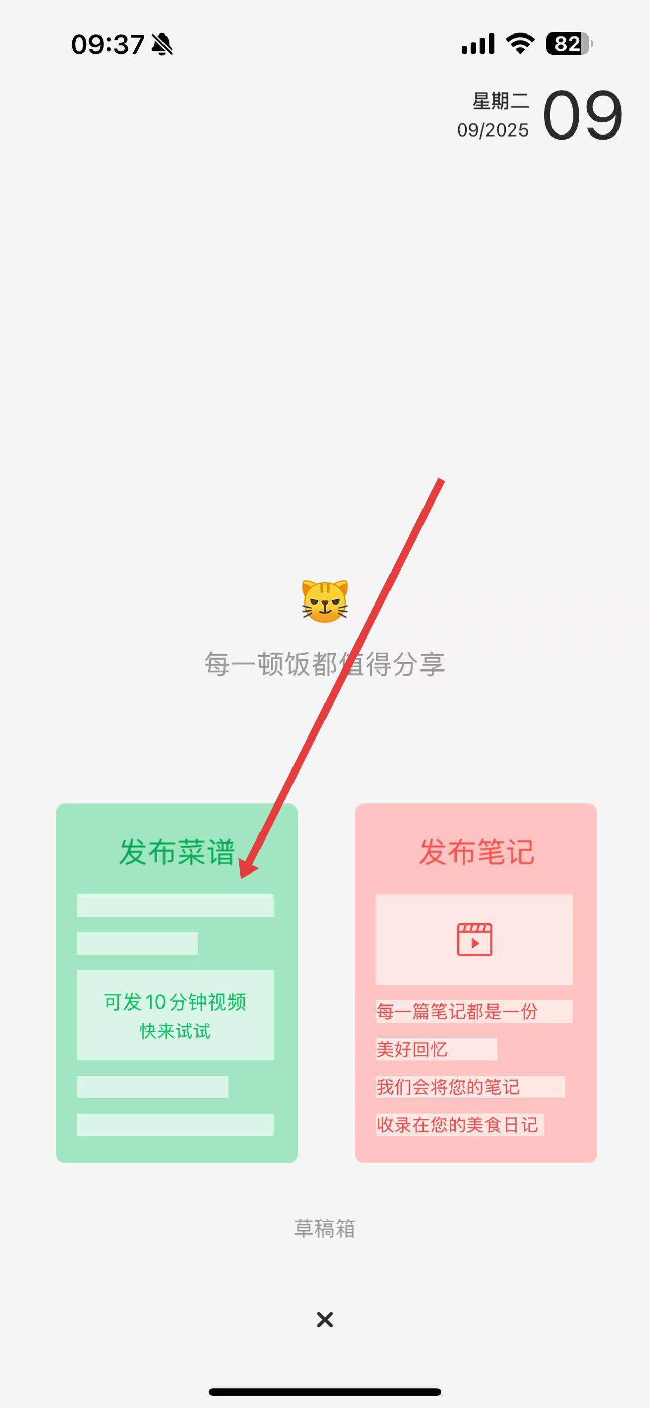 2、在弹出的选项中,点击发布菜谱进入上传菜谱界面。