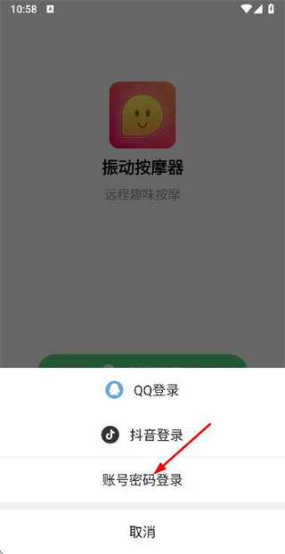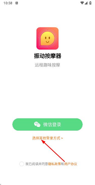 1、在振动按摩器登录页面点击选择其他登录方式,弹出其他登录方式选择窗口。