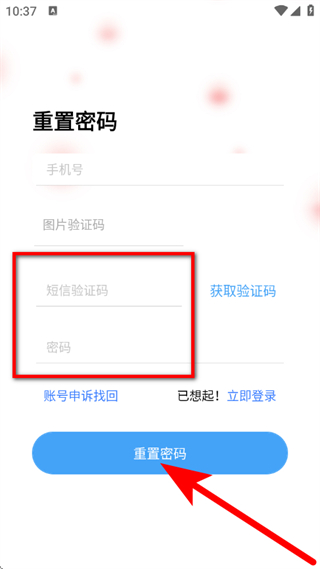 3、输入短信验证码并设置新的密码,点击重置密码,完成密码重置。