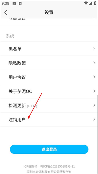 3、在设置页面,点击注销用户选项,进入注销申请页面。