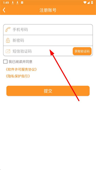 3、在页面输入手机号,设置新密码,获取验证码后同意相关协议,点击提交按钮,即可完成注册。